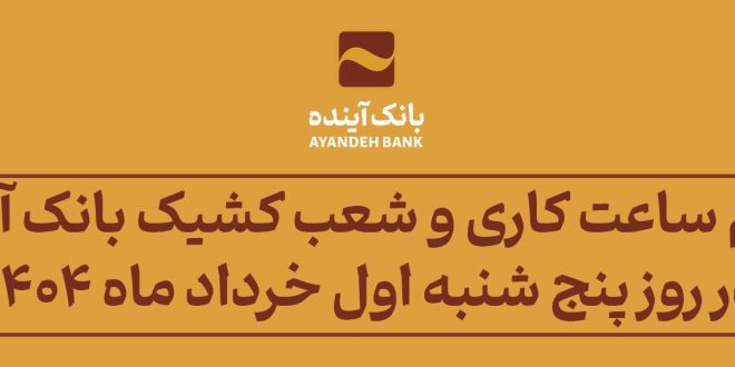 اعلام ساعت کاری و شعب کشیک بانک آینده در روز پنج شنبه اول خرداد ماه 1404