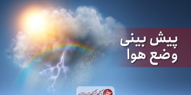 یکشنبه در مرکز، شرق و جنوب شرق کشور وزش باد و ابرناکی و در ارتفاعات رگبار پراکنده پیش بینی میشود. دوشنبه فقط در جنوب شرق کشور وزش باد پدیده غالب میباشد و در سایر مناطق کشور جو آرام و پایدار میباشد. سه شنبه در شمال غرب و غرب کشور ابرناکی و بارش پراکنده رخ میدهد. به تدریج از اوابل شب در شرق اردبیل و گیلان نیز ابرناکی، کاهش دما و بارش انتظار میرود و در سایر مناطق کشور جوی آرام و پایدار حاکم میشود. قابل ذکر است تا اواسط هفته آینده در شهرهای صنعتی و پرجمعیت آلودگی هوا ادامه خواهد داشت و در روزهای شنبه و یکشنبه خلیج فارس مواج است.