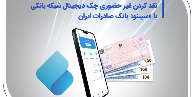 با ارائه نسخه جدید امکان‌پذیر شد نقدکردن غیرحضوری چک دیجیتال شبکه بانکی با «سپینو» بانک صادرات ایران