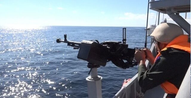 عملیات تیراندازی ناوهای ایران، چین و روسیه به سمت اهداف دریایی در رزمایش مرکب کمربند امنیت دریایی ۲۰۲۴ انجام شد.