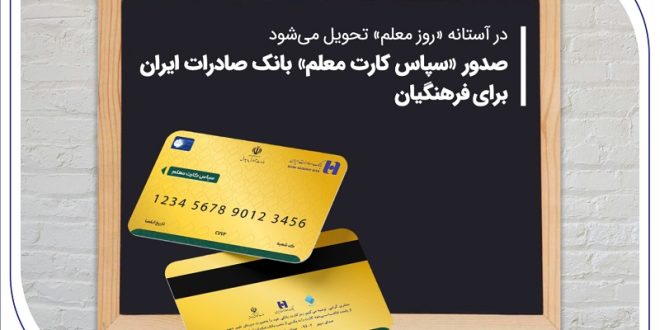 بانک صادرات ایران در آستانه روز بزرگداشت مقام معلم و در راستای اجرای تفاهمنامه ارائه خدمات بانکی و اعتباری به فرهنگیان محترم، «سپاس کارت معلم» را برای تمامی معلمان و فرهنگیان صادر و تحویل میدهد.