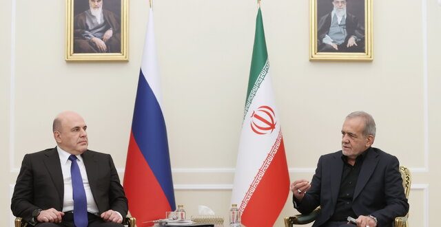 میخائیل میشوستین نخست وزیر روسیه نیز در این دیدار ضمن ابراز خرسندی از دیدار با رئیسجمهور و ابلاغ سلامهای گرم ولادمیر پوتین رئیسجمهور این کشور به دکتر پزشکیان، بر علاقمندی کشورش برای تقویت و گسترش تعاملات و تبادلات با جمهوری اسلامی ایران بهویژه در بخشهای انرژی، صنعت، حمل و نقل، کشاورزی، بهداشت و درمان و امور فرهنگی تأکید کرد و گفت: بهرغم افزایش بسیار خوب تبادلات تجاری در چند ماه اخیر، هنوز ظرفیتهای بزرگی در دو کشور در جهت تأمین منافع متقابل وجود دارد که ما خواستار فعالسازی آنها هستیم.