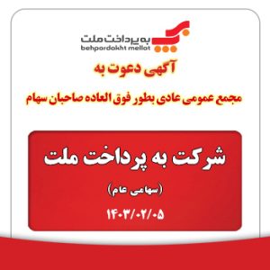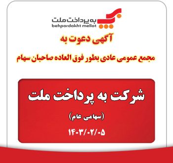 آگهی دعوت به مجمع عمومی عادی بطور فوق العاده شرکت به پرداخت ملت (سهامی عام) برای سال مالی منتهی به 1403/09/30: