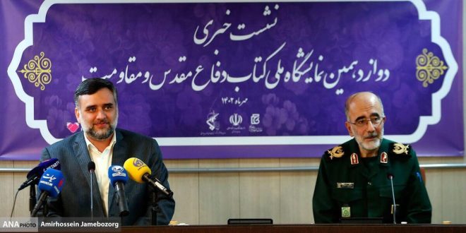 نشست خبری دوازدهمین نمایشگاه ملی کتاب دفاع مقدس با حضور علی رمضانی مدیرعامل خانه کتاب و ادبیات ایران و سردار عبدالرضا آزادی رئیس بنیاد حفظ آثار و ارزشهای دفاع مقدس پیش از ظهر امروز چهارشنبه ۱۲ مهر در خانه کتاب و ادبیات ایران برگزار شد.