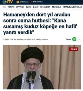 خبرنگار شبکه NTV ترکیه: ایران اقتدارش را به نمایش گذاشت* حضور بی نظیر مردم در نماز جمعه تهران را شاهد هستیم*آیت الله خامنه ای خطبه های ظفر و پیروزی ایراد کرد* پیام آیت الله خامنه ای به دنیای اسلام پیام وحدت بود* آیت الله خامنه ای تاکید اگر پاسخ ایران خفیف بود ولی اگر باردیگر لازم باشد اینبار با شدت پاسخ می دهیم* حضور رئیس جمهور، رئیس مجلس، رئیس قوه قضائیه و مسوولان کشور به همراه مردم از دیدگاه های مختلف نشانه وحدت ایرانیان بود* ابران همزمان با تهران در لبنان هم اقتدارش را به نمایش گذاشت و حضور عباس عراقچی در لبنان که فرود هواپیمای او دربیروت را همه تلویزیون های دنیا پخش کردند یک نمایش اقتدار ایران بود. وزیر امورخارجه ایران هم اکنون در بیروت است* سفر مسعود پزشکیان به قطر بلافاصله پس از وعده صادق دو هم در دنیا خیلی بازتاب داشت و آن را به ثبات و اقتدار ایران تعبیر کردند.