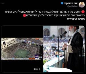 تعجب کارشناس صهیونیست از جمعیت حاضر در نماز جمعهاور فیالکوف، کارشناس مسائل نظامی و امنیتی رژیم صهیونیستی با انتشار تصاویری از رهبر معظم انقلاب و جمعیت حاضر در مصلی نوشت:«همزمان با برگزاری مراسم نماز جمعه به امامت آیت الله خامنه ای و مراسم یادبود سید حسن نصرالله، جمعیت انبوهی از مردم ایران در این مراسم حضور پیدا کردند»