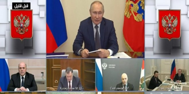 ولادیمیر پوتین در نشست ویژه برای بررسی اوضاع اقتصادی این کشور گفت: تحریم‌هایی که کشور‌های غربی علیه روسیه اعمال کردند، باعث افزایش بهای سوخت در جهان شد. صنایع نظامی، شبانه‌روز برای تامین نیاز‌های نیرو‌های ما فعالیت می‌کنند.