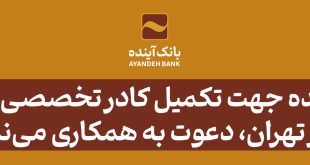 توضیحات بیشتر »بانکآینده جهت تکمیل کادر تخصصی خود در شهر تهران، دعوت به همکاری مینماید