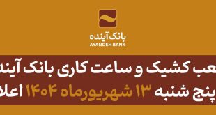 توضیحات بیشتر »شعب کشیک و ساعت کاری بانک آینده در روز پنج شنبه 13 شهریورماه 1404 اعلام شد