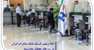 اعلام شعب كشیك بانك صادرات ایران در روزهای تعطیل پنج‌شنبه