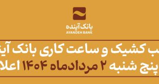 شعب کشیک و ساعت کاری بانک آینده در روز پنج‌شنبه 2 مردادماه 1404 اعلام شد