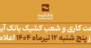 ساعت کاری و شعب کشیک بانک آینده در روز پنج شنبه 12 تیرماه 1404 اعلام شد