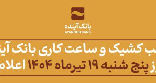 شعب کشیک و ساعت کاری بانک آینده در روز پنج شنبه ۱۹ تیرماه ۱۴۰۴ اعلام شد
